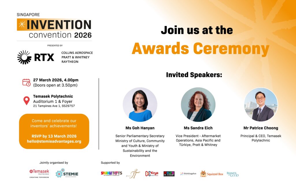 The Singapore Invention Convention, proudly presented by RTX, is the nation’s premier platform for young inventors to showcase groundbreaking ideas and problem-solving skills.